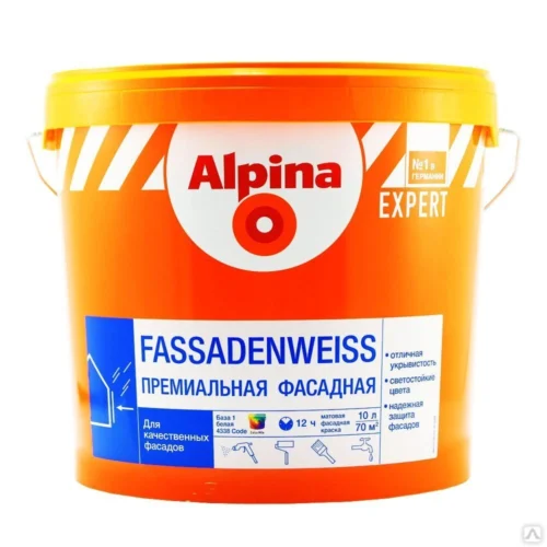Финишное покрытие: неразбавленной Alpina EXPERT Fassadenweiss, в случае необходимости разбавить максимум 5% (объёма) воды.