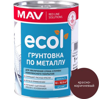 Грунтовка ГФ-021 ECOL по металлу красно-коричневая 1л. (1кг)